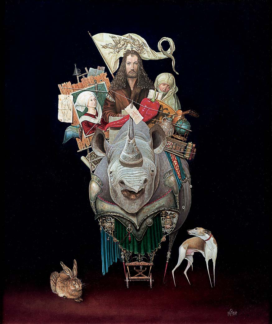 Czech-German painter Frank Kortan creates fictional worlds combining history with dreams. His surreal portraits not only recall glorious past figures, but reveal them in unexpected and wondrous contexts. He combines precise trompe-l’œil technique with the freedom of surrealism, inspired by old masters. He has been awarded several prestigious international prizes for his work. Last year, the S.V.U. Mánes Praha publishing house published an extensive monograph of his paintings. Next year, an exhibition in Prague and Karlovy Vary is planned.