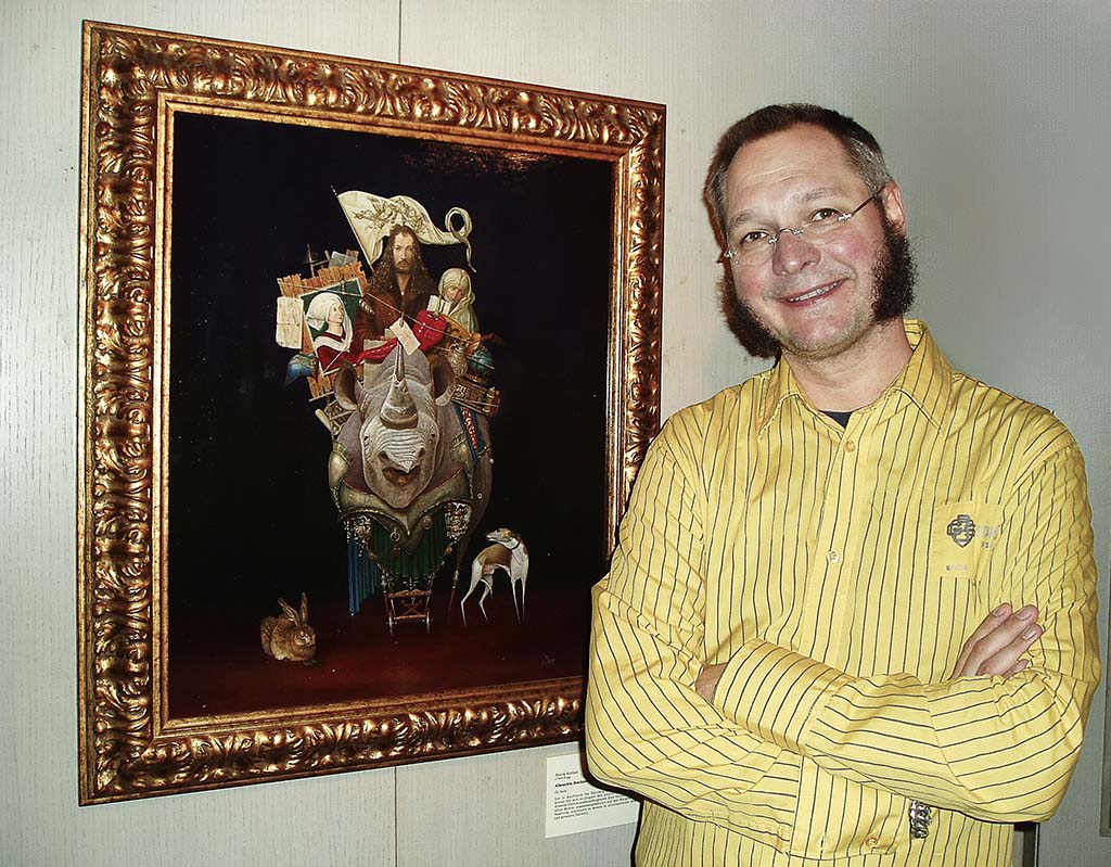 Frank Kortan se svým obrazem vystaveným v Museu Albrechta Dürera (Albrecht Dürer Haus) v Norimberku, foto: Petr Šálek