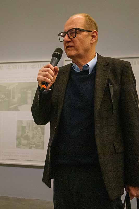 Leoš Válka, ředitel centra DOX, při TK k zahájení výstavy HIT BY NEWS, foto© Petr Šálek
