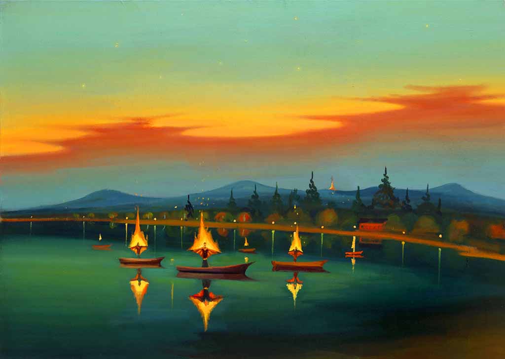 Komorní IN GALLERY v blízkosti Kongresového centra Praha prezentuje na výstavě s názvem Čarokraj okolo dvou desítek pláten malíře Jaroslava Valečky.