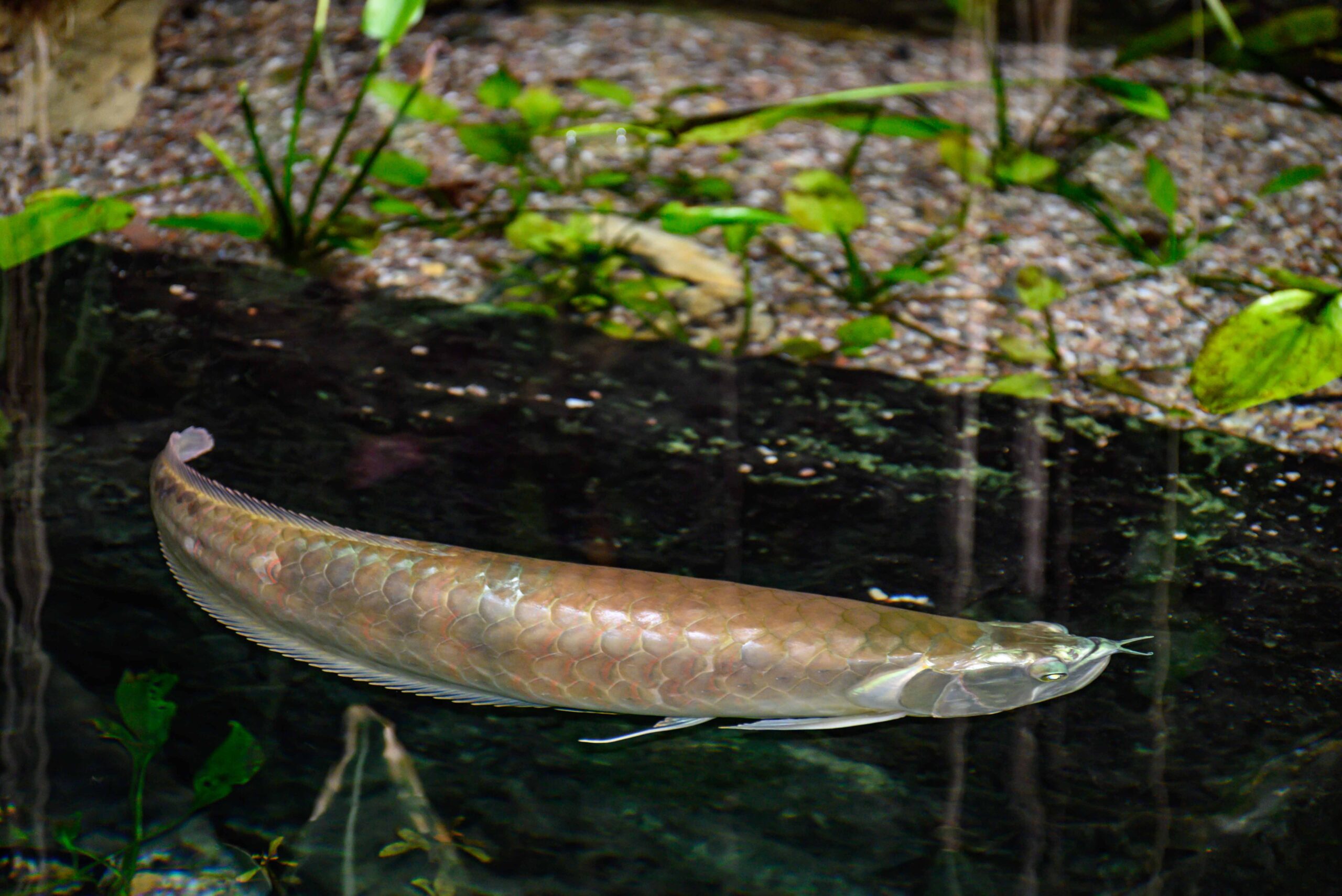 V jezírku uvidíte dravou rybu, která se nazývá arowana dvouvousá. Foto© Petr Šálek