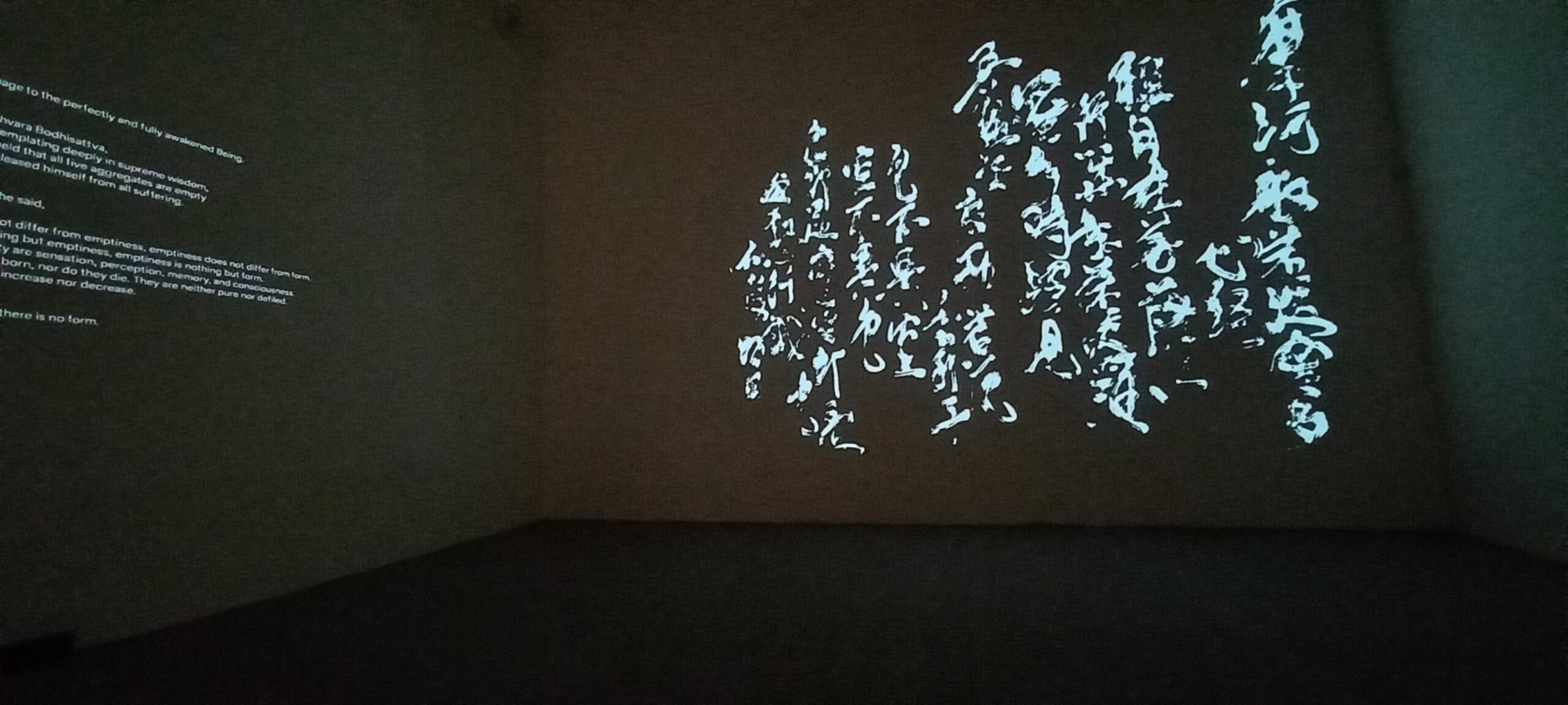 Ale zastoupeny jsou i kaligrafie ze sbírek Národní galerie. Třetí část ve věži centra DOX zprostředkovává animovanou rekonstrukci Geislerova kaligrafického přepisu slavné budhistické Sutry Srdce.