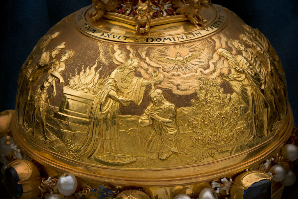 Horní polokoule korunovačního jablka Českých korunovačních klenot. V knize 4x zvětšeno oproti originálu. Foto© Jan William Drnek