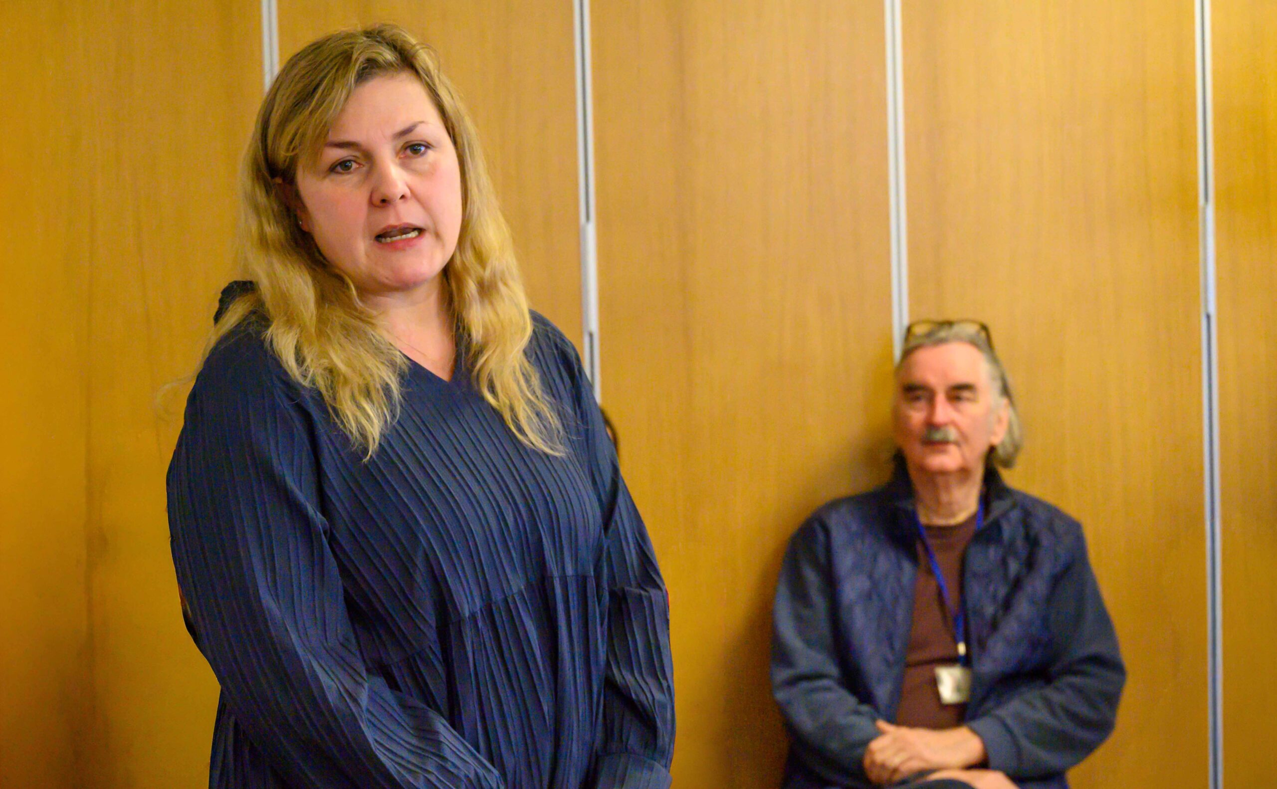 Restaurátorka UPM Martina Chadimová a kurátor Jan Mlčoch při tiskové konferenci. Foto© Petr Šálek