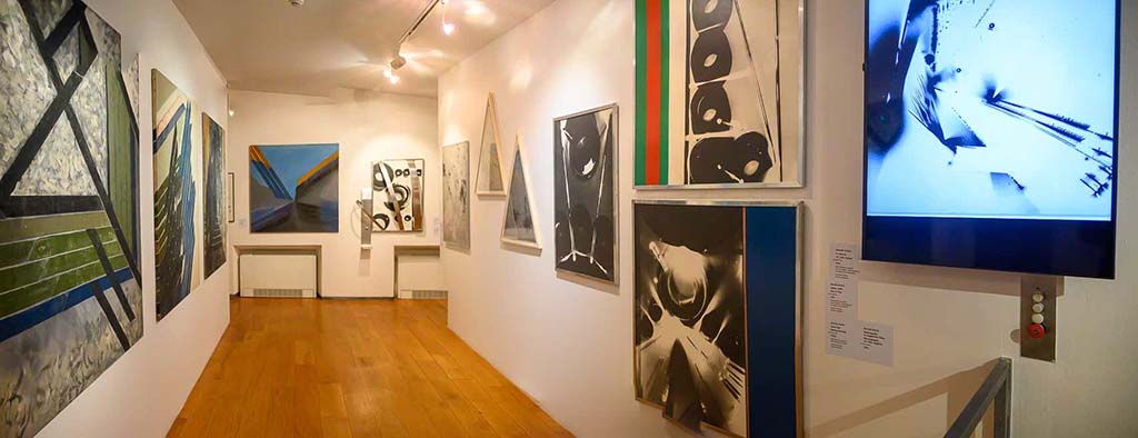 Představitelé geometrické abstrakce byli aktivními členy klubu konkretistů založeného v roce 1967 na Kampě. Jejich abstraktní obrazy a v případě Kurandové i trojrozměrné objekty jsou výrazně barevné. Kromě experimentálních prací Zdeňka Rybky vytvořených pomocí komplikované techniky elektrografie, jsou na výstavě i jeho velkoformátová plátna z nedávné minulosti. Profesní dráhy obou umělců ovlivnil politický vývoj v Československu po roce 1968. Dobrovolně odešli z Prahy a vyučovali na výtvarných školách. Některé jejich obrazy naznačují politický podtext.