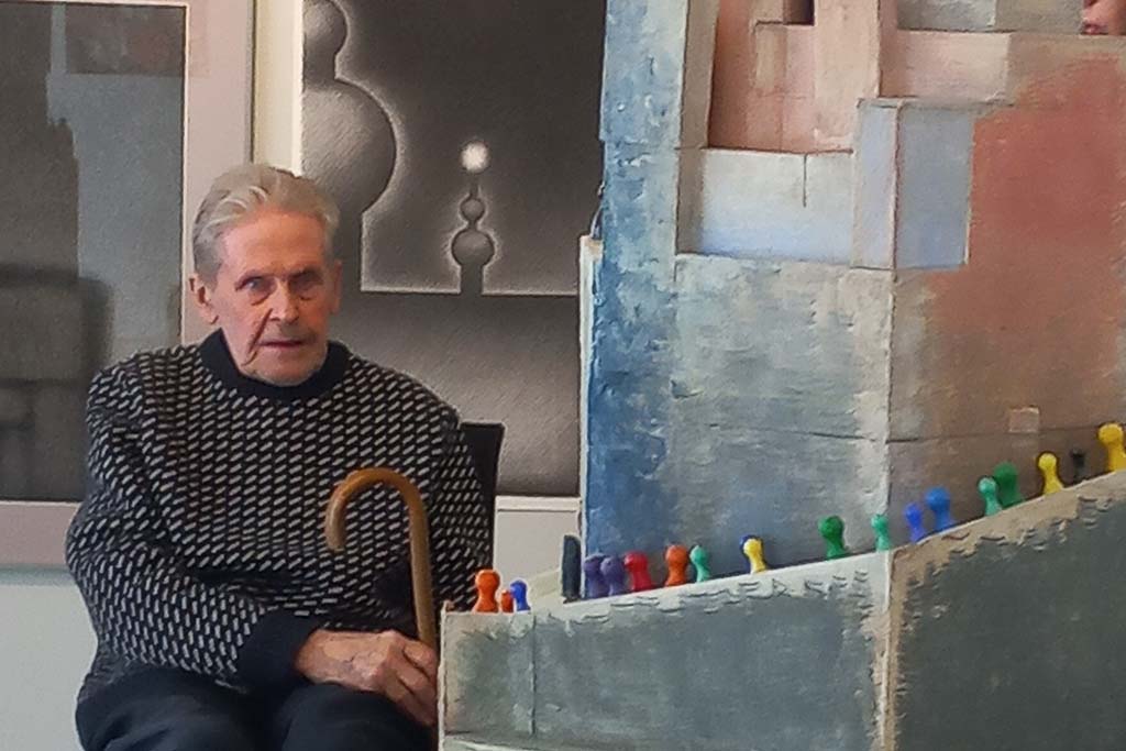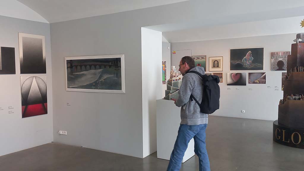 Thematically arranged exhibition includes drawings, paintings and objects with a meditative tone. The titles of the individual chapters are therefore very simple: Light, Sea and Ships, Churches, Buildings, Glasses or Animals. The clean and simply created paintings speak in the language of symbols and provide an insight into the world of a wise, balanced and spiritually based creator.