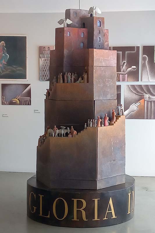 Výstava Václav Sokol: Hojnost v Museu Kampa, dřevěný Betlém pro kostel v Odolené Vodě.